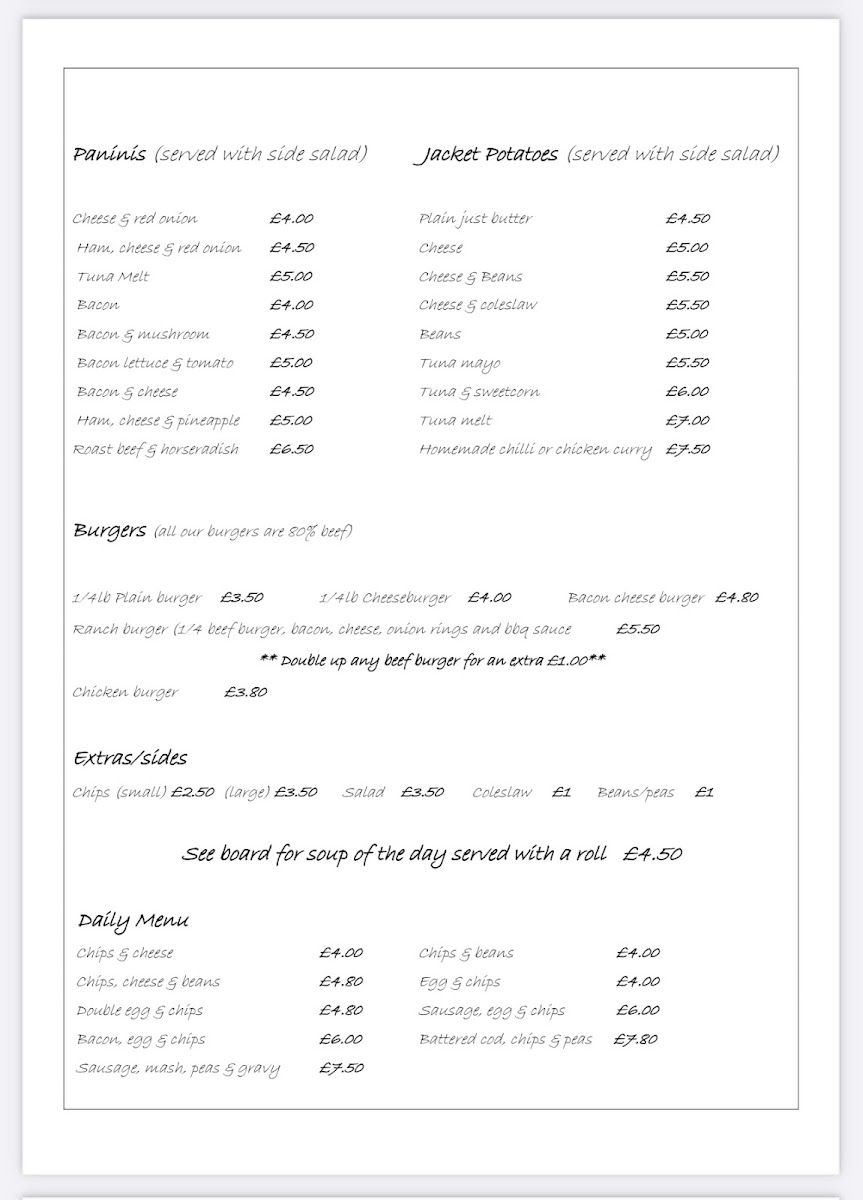 The menu at Severn Park Cafe boasts a delightful variety of dishes that cater to all tastes. Start your day with their must-try Welsh breakfast, featuring scrumptious seaweed and oat laverbread cakes that are a local favorite. Indulge in their hearty jacket potatoes loaded with toppings like cheese or homemade chili, all reasonably priced. For those craving something meaty, the selection of burgers is irresistible, from classic cheeseburgers to flavorful ranch burgers.